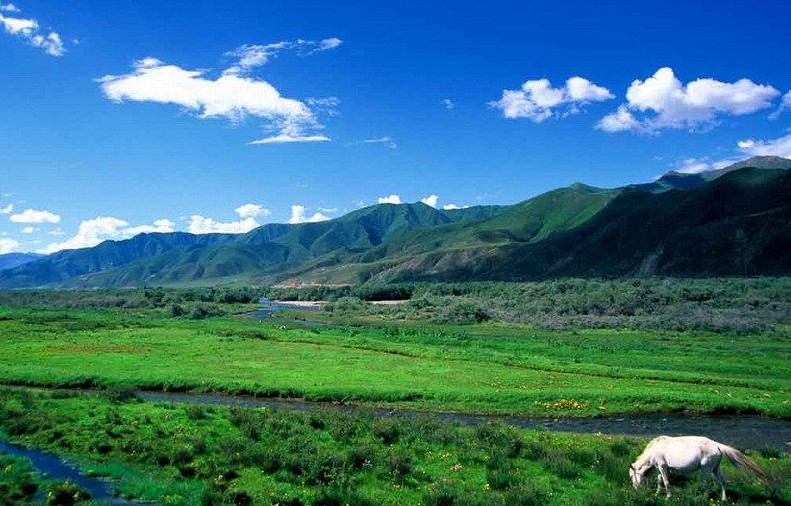 所謂山南是指岡底斯山與念青唐古拉山以南,雅魯藏布江中游,雅礱江河谷一帶。雅魯藏布江中游橫貫山南北部,留下了富饒豐腴的谷地和平原,是典型的高原河谷平原地區(qū)。河谷兩側(cè)山地的高處是牧場,腰部是森林,谷底及河口則是肥沃的農(nóng)田。