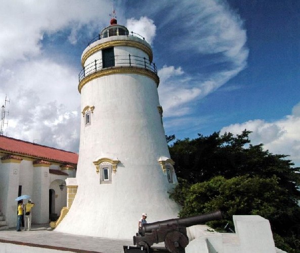 炮臺(tái)上的圣母雪地殿圣堂建于1626 年。在最近的修葺中,在教堂內(nèi)發(fā)現(xiàn)了華南地區(qū)罕見的壁畫。這些壁畫糅合了中西文化的特色,具有極高的藝術(shù)價(jià)值。 屹立在教堂側(cè)的東望洋燈塔,是中國沿海地區(qū)最古老的燈塔,建于1865 年。燈塔高13 公尺,白墻紅頂,雄偉挺拔。在晴朗的夜晚,澳門四周 20 里的范圍內(nèi)可以見到燈塔射出的燈光。