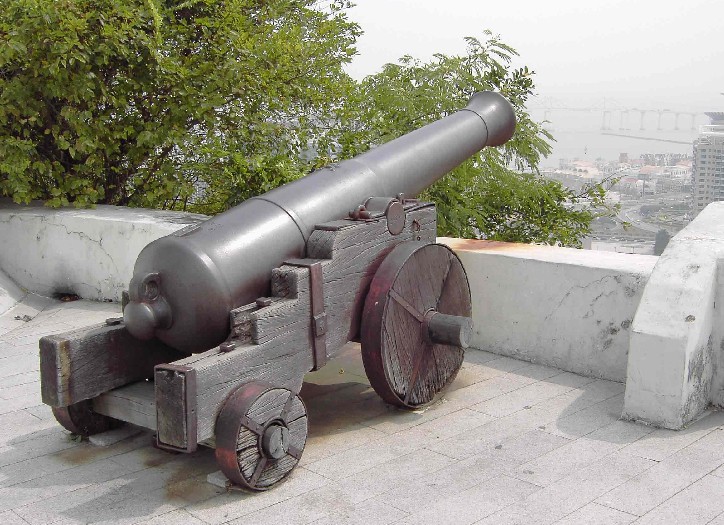 東望洋炮臺(tái)位于澳門半島最高峰松山之巔,俯瞰整個(gè)半島,炮臺(tái)于1637年建成,建筑占地約800平方米,炮臺(tái)平面為不規(guī)則多邊形,墻高約6米,立要由花崗石筑建而成,女兒墻不作雉堞式設(shè)計(jì),在架設(shè)大炮的地方,女兒墻稍為降低。
