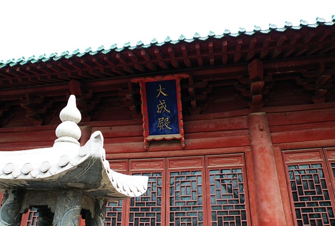 莘縣文廟始建于明洪武三年,系舊時祭祀孔子的場所。文廟原由欞星門、大成殿、啟圣祠、明記堂、敬亭、名宦鄉(xiāng)賢二祠等組成,現(xiàn)僅存大成殿。文廟占地面積2439平方米,大成殿建臺基上,面闊五間,東西闊19米;進深三間,南北長11.8米 ,單檐歇山頂。殿內(nèi)的檐柱、前金柱、后金柱的直徑均很碩大,金柱高4.4米 ,前后金柱上擱置著七架梁、五架梁、三架梁。殿內(nèi)的脊檁枋下釘一塊木板,木板上有題記:“ 大明弘治十二年歲次己未秋七月吉旦提調(diào)官知縣孟□門主□桂……”。版權(quán)所有山東聊城聊之旅國際旅行社有限公司,轉(zhuǎn)載必究!在殿內(nèi)前上金檁枋下釘?shù)哪景迳线€有二則題記,分別是:“大明崇禎六年歲次癸酉中秋吉旦……”和“大清乾隆貳拾年歲次乙亥陸月吉旦文教郎知莘縣事儒學……。”大成殿的木柱和梁架風格古樸,有元末明初的特征,具有較高的文物價值。