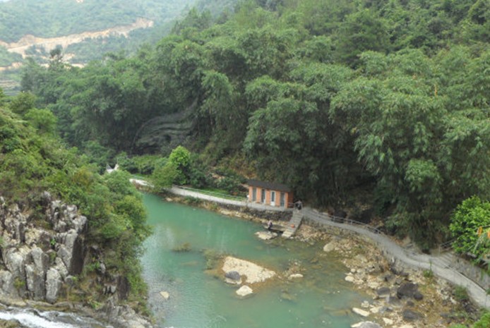鳳翔峽位于粵東第一山---鳳凰山山脈東南翼,緊靠鳳凰山脈第三峰---番崠山(1036M),也是鳳凰山的南大門。雄麗多姿的鳳凰山脈逶迤起伏,峰回路轉(zhuǎn)到了大山地界,大山有一個鳳湖村,背靠主峰1391米的高山,村前兩座林木疊翠的青山中間形成了一條曲曲彎彎的峽谷,山谷險峻陡立,清泉如玉噴珠,這就是風景獨特的鳳翔峽。