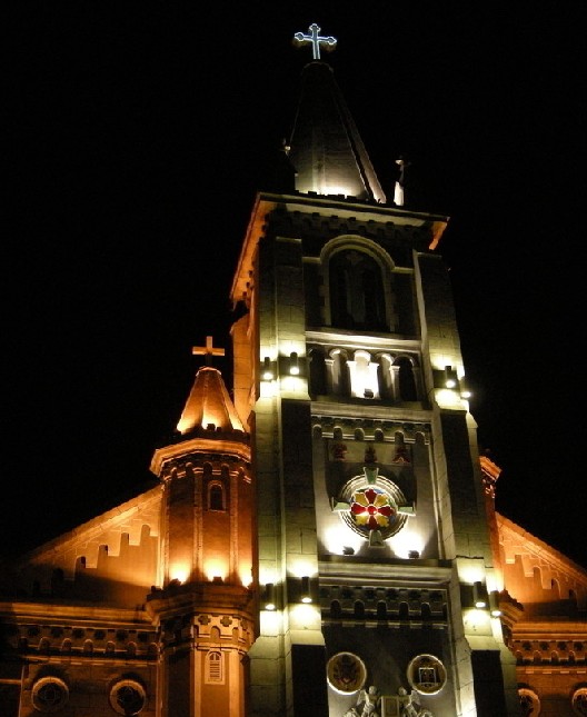 教堂設(shè)有三間大殿,主殿建筑富麗堂皇,給人的感覺肅穆而深沉。在教堂的主殿與堂身之間有一道由實心磚筑造的拱門。