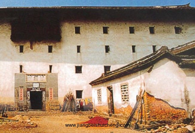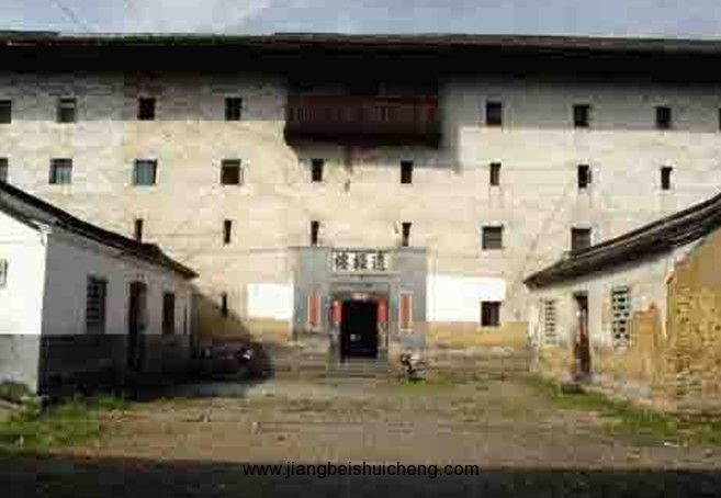 遺經(jīng)樓位于福建省龍巖市高陂鎮(zhèn)上洋村,建于清咸豐元年(1851年),方形土樓。外墻東西寬136米,南北長(zhǎng)76米,占地10336平方米。其后座主樓高17米5層,是永定現(xiàn)有土樓中最高的樓房。主樓左右兩端分別垂直連著一座四層的樓房,并與主樓平行的四層前樓緊緊相接,圍成一個(gè)巨大的方樓,如此環(huán)繞形成一個(gè)大“口”字。里面又有一組小“口”字形建筑,形成一個(gè)獨(dú)特的“回”字形整體造型。真是“門中有門,樓中有樓,重重疊疊”,當(dāng)?shù)厝硕挤Q它為“大樓廈”。 中間為祖堂。前樓一左一右建有兩所學(xué)堂,樓內(nèi)子女可以在樓內(nèi)就讀,學(xué)堂中間是個(gè)石坪,前建有大門樓,大門高6米寬4米。在主樓后面有花園一座、魚塘一口以及碓房、牛舍等附設(shè)建筑。遺經(jīng)樓共有280個(gè)房間。