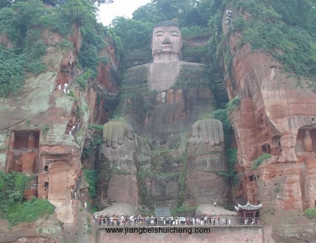 版權(quán)所有,山東聊城聊之旅國際旅行社有限公司,轉(zhuǎn)載必究!在大佛左右兩側(cè)沿江崖壁上,還有兩尊身高超過16米的護法天王石刻,與大佛一起形成了一佛二天王的格局。與天王共存的還有數(shù)百龕上千尊石刻造像,宛然匯集成龐大的佛教石刻藝術(shù)群。大佛左側(cè),沿“洞天”下去就是近代開鑿的凌云棧道的始端,全長近500米。右側(cè)是唐代開鑿大佛時留下的施工和禮佛通道——九曲棧道。佛像雕刻成之后,曾建有七層樓閣覆蓋(一說九層或十三層),時稱“大佛閣”、“大像閣”;宋時稱“凌云閣”、“天寧閣”;元代稱“寶鴻閣”;明代俗稱“佛棚”、清代俗稱“佛亭”,最終廢毀……至今,仍舊可以從大佛兩側(cè)的山崖上看到多處孔穴和屋檐痕跡,專家證實,這些正是歷代建造或維修樓閣時,安置梁柱和屋檐的地方。