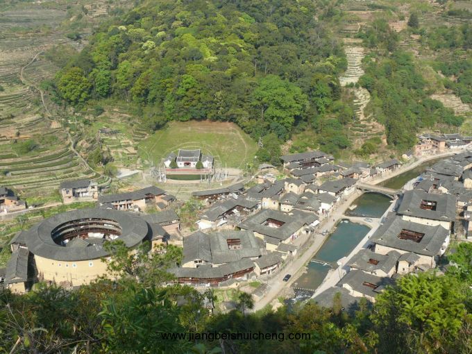 于是,張姓族人沿著溝谷兩旁,建造了一座座集居住、防御等功能于一體的圍合型土樓建筑。最早的土樓福興樓建于明代崇禎四年(1631年),為七世東崖公所建,以后又陸續(xù)建造42座土樓,有方形、圓形、圍裙形、曲尺形等,這些土樓沿山溪呈長形擺布,高大雄渾,氣勢恢宏。版權所有,山東聊城聊之旅國際旅行社有限公司,轉載必究!清末后,由于地理環(huán)境所限,張姓族人在沿溪兩岸的空地上,又建起了一座座單院式土木、磚木結構的吊角樓,形成大樓帶小樓、高低錯落布局的奇妙景觀。樓前屋后鋪就的卵石小徑,被幾百年先人們的足跡磨得圓潤,細雨輕煙,閃出柔和的光澤。