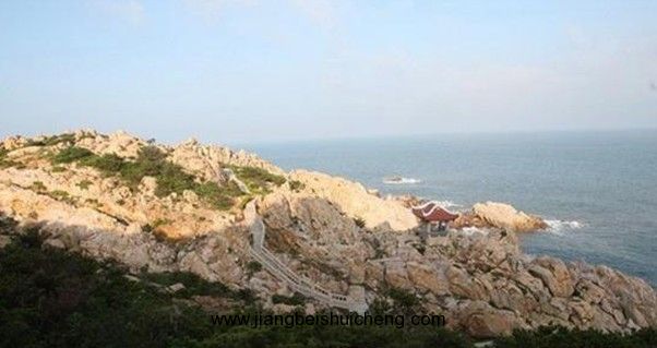 沿著新修的水泥大道漫步上山,就來到了神石園的金山坳,從這里可以看到“金山寺”“百獸拜神”“百花園”“艾草埕”“海獅喜雨”“金字石”等景點。停車場的右邊山坡上是金山寺,寺雖簡陋,卻有兩百年歷史,它建于清中葉,里面供奉著佛祖釋迦牟尼。[1]“百獸拜神”是由山上的石景和海上的奇觀動靜結合組成的,它孕育著一個十分生動的傳說:媽祖升天后,其英靈馳騁在海面救苦救難;而海上鯊魚、鯨魚家族,仗著魚多勢眾,經常在海上興風作浪,危害百姓。為救黎民蒼生,媽祖決定與鯨鯊決一死戰(zhàn)。雙方約定,如果媽祖三招之內能制服鯨鯊,它們愿從此聽從媽祖調遣,并于每年三月二十三前來朝拜。媽祖施用“汲水法”,只一招就把鯊魚、鯨魚擱淺困住,動彈不得。從此,鯊魚鯨魚們遵守諾言,每年三月必成群結隊,千里迢迢游向湄洲島,遙對祖廟山朝圣,這就是當?shù)厝苏f的“海幫拜媽祖”的壯麗奇觀。