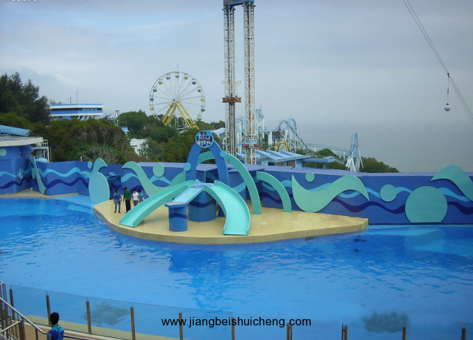 海洋劇場位于山上中央,能容納4000名觀眾。劇場中央是一個(gè)巨大水池,每日有殺人鯨、加州海獅和變吻海豚進(jìn)行精彩表演。