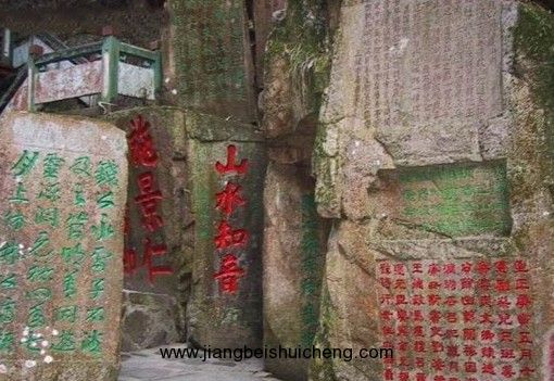 1.宋時(shí)徐錫之題喝水巖詩:“重巒復(fù)嶺鎖松關(guān),只欠泉聲入座間;我若當(dāng)年侍師側(cè),不教喝水過他山” 認(rèn)為此處重巒疊嶂,不可無水;當(dāng)年要是他在,就會(huì)勸法師不要讓溪水改道。用反意評(píng)說歷史傳說,亦饒有風(fēng)趣。