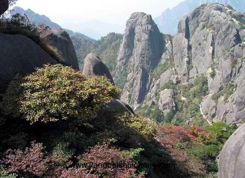 桃花峰位于黃山南端,西連云門峰,與紫石峰隔湯泉溪相望,為36大峰之一,海拔1460米。此峰土質(zhì)肥沃,草木繁盛。早先峰上多桃樹,人稱“十里桃花峰”,至今仍盛開不衰。每年3~4月,桃花山峰麓層層開至峰頂,如同錦霞,分外艷麗。前人曾有詩形容:“花開十萬樹,峰似繹霞披?!被ㄖx之時(shí),滿山紅瓣流入桃花溪,版權(quán)所有,山東聊城聊之旅國際旅行社有限公司,轉(zhuǎn)載必究!名曰“桃花湯”。峰便由此而得名。清黟縣人、雍正間舉人、名士胡與高有詩曰:“山頭桃花開,山中玉女笑。帝鄉(xiāng)無盡春,日日斜陽照。”詩中將桃花盛開和玉女歡笑糅在一起,給桃花峰抹上了一層春色長(zhǎng)駐的浪漫色彩。關(guān)于峰上的桃樹為何人所栽,有兩種傳說:一說當(dāng)年軒轅黃帝來黃山煉丹時(shí),看到桃花峰上缺花少木,乃令眾臣遍栽桃樹,點(diǎn)車上觀之,更能看出它獨(dú)臥壑外,不與眾峰相接。故有詩云:“一峰貪枕自離群,萬古山中臥白云。盛世人皆爭(zhēng)貢獻(xiàn),汝甘壑外不人群?”