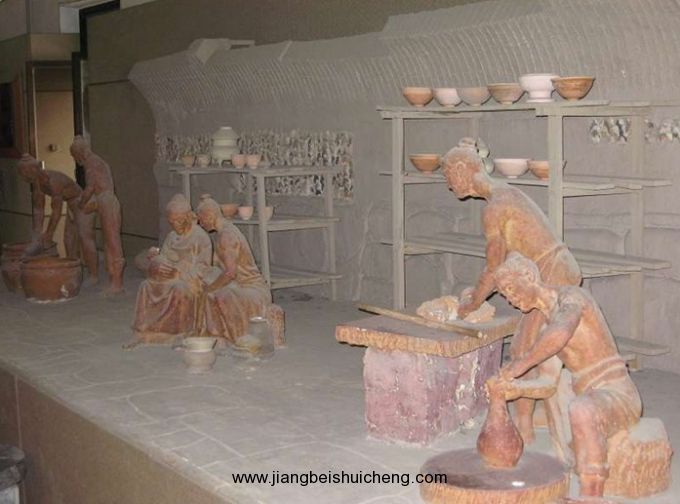 展覽中模擬復原的場景有,“十里窯場”盛況、爐火不夜、古代制瓷工藝流程演示、窯爐內(nèi)部燒造場景、祭窯神、耀瓷與民俗特展,給游客以穿越時空、走進歷史、身臨其境的感受。從一個側(cè)面展示了源遠流長的華夏文明。
