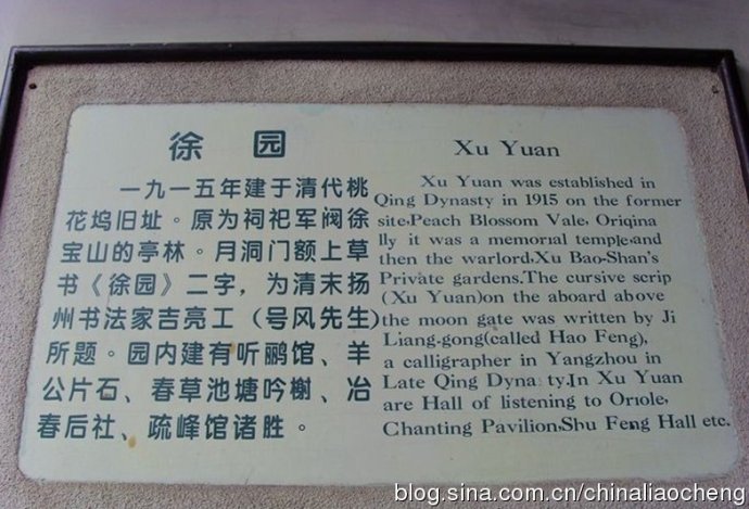 徐園始建于一九一五年的桃花塢舊址,此石碑上面記載了徐園的概況。
