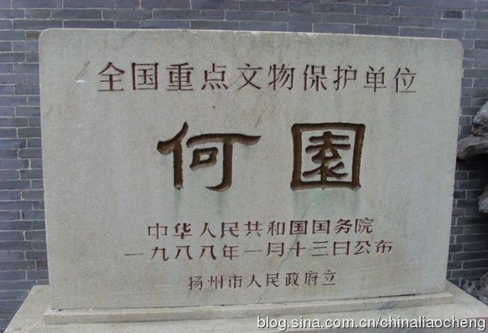 揚(yáng)州市人民政府為何園立的全國(guó)重點(diǎn)文物保護(hù)單位石碑。