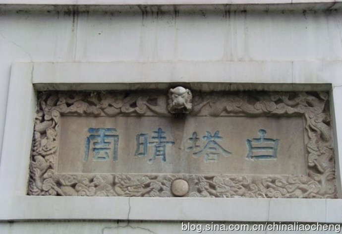 白塔晴云的門上嵌著賴少奇書(shū)的"白塔晴云"石額。