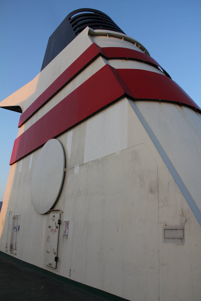 看,這艘船的甲板上,既有提醒游客的熱心性。還為甲板上增添了一道亮麗的風(fēng)景線,而翻譯成的韓文,就足以說明了威海碼頭的國際性。