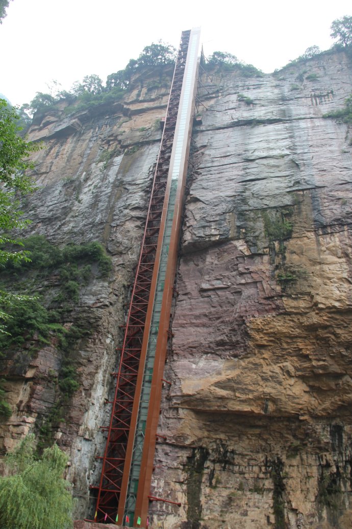 這個,嘿嘿,這個觀光電梯可比剛才的絕壁天梯文雅多了,只需要兩分鐘就可以一躍而到近兩百米的紅巖絕壁頂面,在不經(jīng)意間我已經(jīng)跨越了十五億的地質(zhì)時空,哈哈哈,好爽。