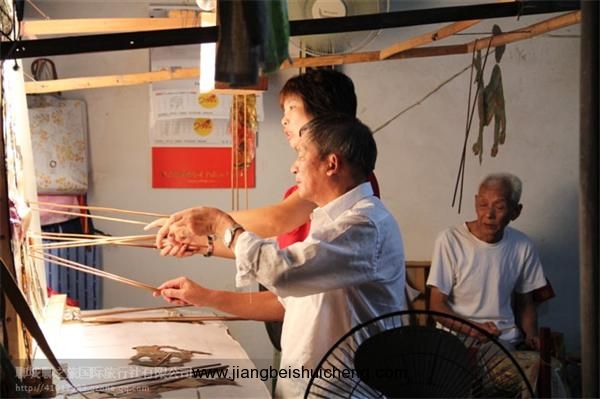 在進(jìn)行皮影藝術(shù)的幕后人員。