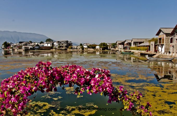 雙廊自古就是名人學(xué)者滯留的地方,古有楊升庵、李元陽,今有舞導(dǎo)家楊麗萍、作家蘇童、畫家趙青等。或許雙廊就是一處圣地,躋身于此,我感受到從未有過的平靜與安逸,仿佛自己真的就遠離了塵世,找到了夢幻中的祥和。而玉璣島也給了我同樣的感覺,風(fēng)光秀麗的玉璣島、與南面的金梭島南北相對,二島猶如浮在水面的一對鴛鴦,再加上,拍打礁石的陣陣海浪聲,真真是應(yīng)了一句話,置身于此,只羨鴛鴦不羨仙。島上人家民風(fēng)淳樸,我們路過一戶人家,好客的白族主人熱情地邀請我們進去坐坐,閑話家常,一瞬間,我錯覺到,我不是在旅游,卻像是回到了家一般,如此溫馨。