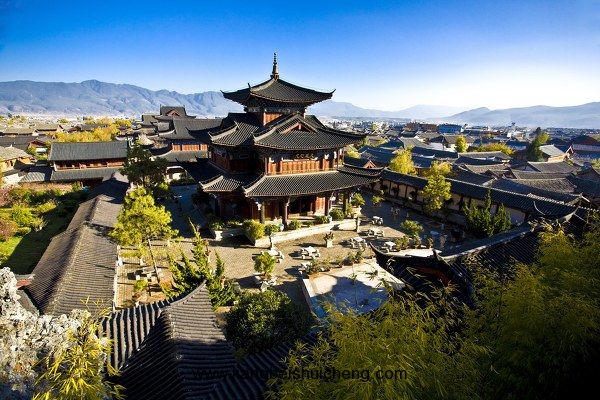 “北有故宮,南有木府”??邕^清泉汩汩的流水小橋,突見一座木牌坊赫然立于土木瓦頂居民之間。木府是納西古王國名木古樹、奇花異草匯聚一體的園林,它介乎于皇家園林與蘇州庭院園林之間,將天地山川的清雅之氣與王宮的典雅富麗融為一處,充分展現(xiàn)了納西族廣采博納多元文化的開放精神。我和小伙伴不禁拍照留念,昔日的木府平常百姓是很難進入的而今天它成了人們旅游觀光的圣地,我沉浸在了愛情的甜蜜之中并感到樂此不彼。在當(dāng)時的封建社會,等級森嚴,民眾很難有表達愛情的時候,而如今的社會主義社會提倡人人平等,讓更多的人享受到了生活的幸福,“舊時王謝堂前燕,飛入尋常百姓家”,納西人民追求唯美純真的愛情的美好愿望也成了現(xiàn)實。