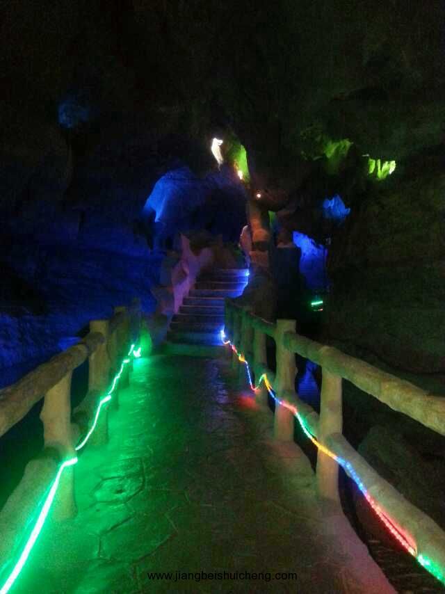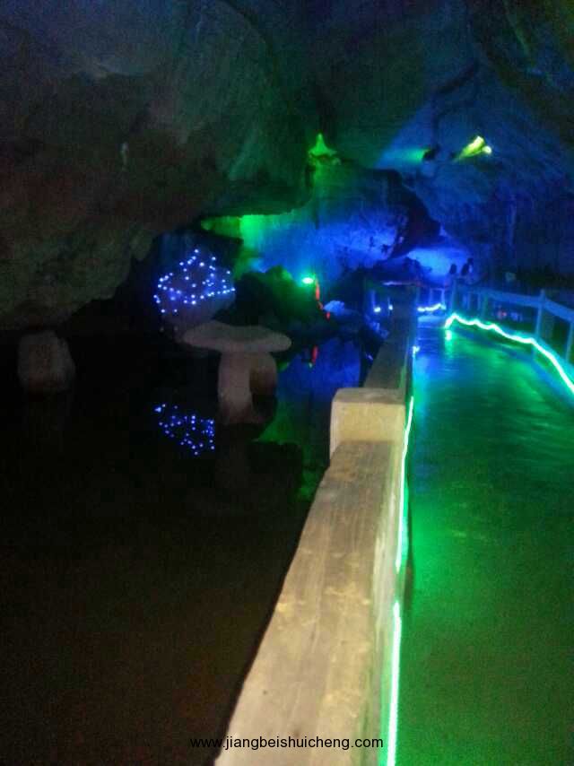 第二天游覽地下大峽谷,地下大峽谷最出名的游玩項(xiàng)目當(dāng)屬地下漂流。地下河漂流項(xiàng)目經(jīng)過改造,漂流長度由原來的723米延長到1000米。該項(xiàng)目已經(jīng)得到上海大世界吉尼斯記錄總部的認(rèn)證,被譽(yù)為中國最長的溶洞漂流項(xiàng)目[。漂流道的改造設(shè)計(jì)充分體現(xiàn)了溶洞內(nèi)的幽深莫測(cè),起伏高下,波激浪涌,抑揚(yáng)頓挫的特點(diǎn)和恐龍模型的陣陣吼聲,將地下河漂流的原生野始,驚險(xiǎn)刺激演繹的淋漓盡致。