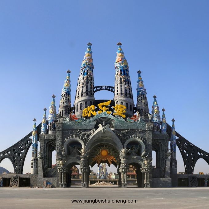 景區(qū)入口處——歡樂凱旋門,東西橫跨180米,高59米,是世界主題樂園中規(guī)模最大并充滿魔幻智慧色彩的地標性建筑,充分展現(xiàn)出世界之最的恢宏磅礴氣勢。
