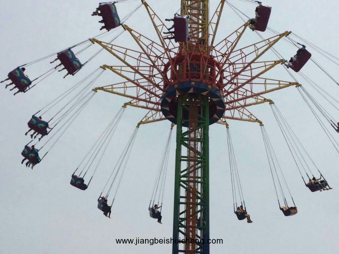 鎮(zhèn)園之寶世界之最——藍火過山車,由德國馬克公司原裝進口,總造價1.2億,全長1098米,至高點38米,最高時速可達100公里,采用火箭發(fā)射式原理,讓游客體驗瞬間離地的超刺激、驚險快感。