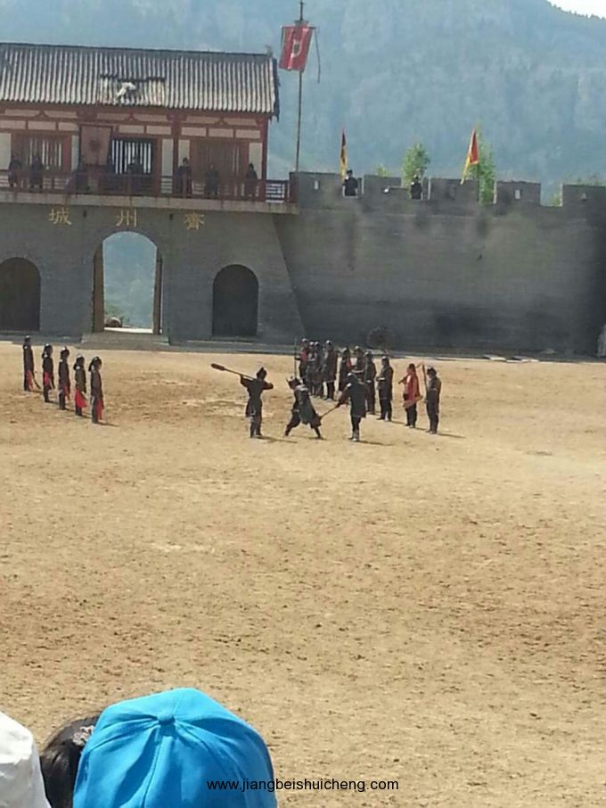 九頂塔影視劇場精心打造了五大實景劇。有紅色經(jīng)典參與劇《地道戰(zhàn)》、好萊塢場景劇《山洪暴發(fā)》、大型馬戰(zhàn)實景劇《好漢秦瓊》、《武松醉打蔣門神》、《劉三姐招親》,是國內(nèi)實景劇節(jié)目演出最多的景區(qū)。紅色經(jīng)典參與劇《地道戰(zhàn)》演員陣容龐大,具有較強的思想性、參與性、喜劇性和娛樂性,再現(xiàn)了當年地道戰(zhàn)的戰(zhàn)爭場景,濃縮了地道戰(zhàn)的精彩片段,是一部難得的“牢記歷史、勿忘國恥”的生動愛國主義教育題材。好萊塢場景劇《山洪暴發(fā)》,再現(xiàn)了暴風(fēng)驟雨、驚心動魄的場面,氣勢磅礴,令人震撼,弘揚了中國人民不被自然災(zāi)害所嚇倒和團結(jié)一致、克服困難、重建家園的大無畏精神。