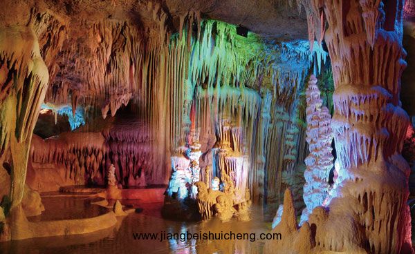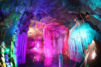 終于,到了。我們在導游的帶領下,邁著悠閑地步伐,欣賞著大自然的鬼斧神工和無窮造化。石花、石柱、石筍、石幔、石瀑本身就已是栩栩如生,再加上現(xiàn)代化七彩燈光的襯托,更是美得不可方物。溶洞內(nèi)還有連接裂谷兩端的人工橋,橋兩側(cè)是散發(fā)著五彩斑斕色彩的石柱和石筍,同來的游客有個特搞笑的,扮起了阿凡達,抓住護欄左右翻滾,大家頓時笑聲一片。再往里走,裂谷深處,石瀑傾瀉而下,嘩嘩的流水聲在谷內(nèi)激蕩開去,宛若華美的樂章。更神奇的是,水是暖暖的,有的地方竟還氤氳出大片霧氣,置身其中,那感覺真是妙不可言。都說“桂林山水甲天下”,但在我看來,此山,此水,此谷,也是世外桃源,終會聞名遐邇。