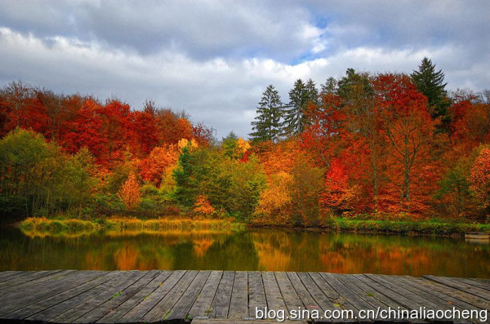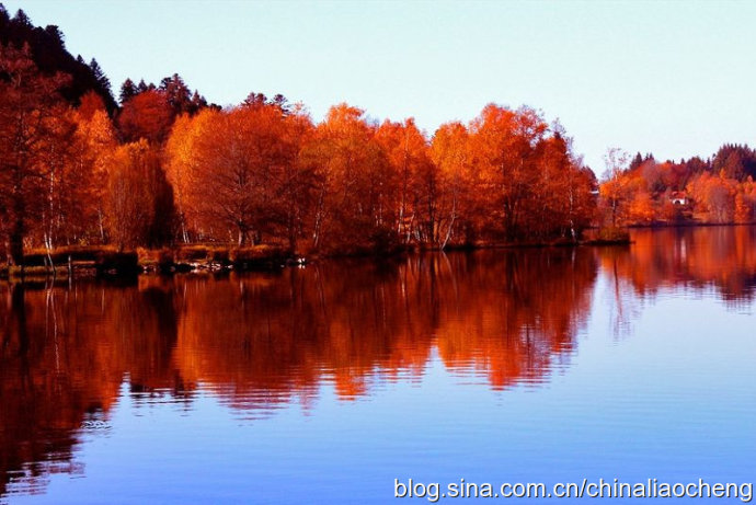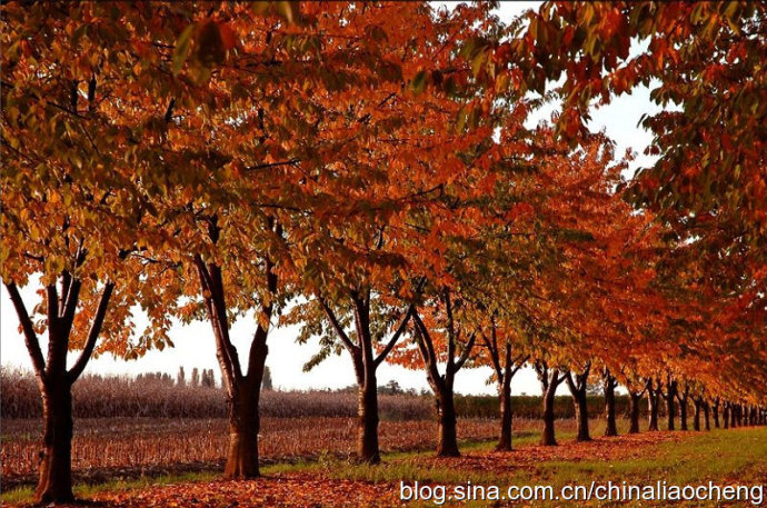 最動(dòng)人是秋林映著落日。那酡紅如醉,襯托著天邊加深的暮色。晚風(fēng)帶著清澈的涼意,隨著暮色浸染,那是一種十分艷麗的凄楚之美,讓你想流幾行感懷身世之淚,卻又被那逐漸淡去的醉紅所懾住,而情愿把奔放的情感凝結(jié)。