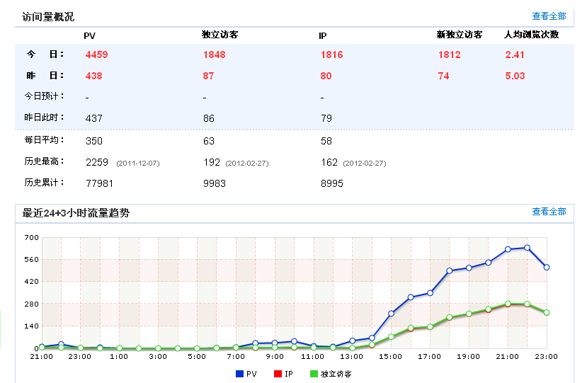 之旅旅行社官方網(wǎng)站www.juzishei.cn日流量 4459!創(chuàng)2012.1.1上線以來新高!恭喜聊之旅旅行社網(wǎng)絡(luò)中心團(tuán)隊(duì)!