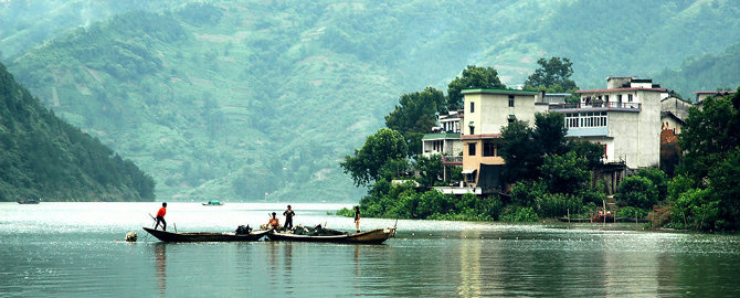從深渡走上去,最有名氣的地方,就是三潭一帶了,即沿岸綿潭、瀹潭、漳潭三個(gè)自然村。由于特殊的山水自然條件,形成優(yōu)越的小氣候,這里不僅風(fēng)景優(yōu)美,而且盛產(chǎn)名茶和枇杷、柑桔、蜜桃、板栗等干鮮果品。此地所產(chǎn)枇杷,果大、味甜、早熟,俗稱“三潭枇杷”,久負(fù)盛名。當(dāng)?shù)厝苏f(shuō)五、六月份枇杷成熟,“五月枇杷正滿樹(shù)”,數(shù)十里江岸,黃橙橙的枇杷掛滿枝頭,如星斗閃爍,如瑪瑙灼灼,直使游人留連忘返。而且這一帶的民居最具徽派民居的代表性,據(jù)說(shuō)中國(guó)郵政發(fā)行的中國(guó)民居普通郵票,其中安徽民居的圖案就是以漳潭附近的新楊村建筑為藍(lán)本設(shè)計(jì)的。版權(quán)所有,山東聊城聊之旅國(guó)際旅行社有限公司,轉(zhuǎn)載必究!站在江邊遠(yuǎn)遠(yuǎn)望去,典型的徽派民居黑白分明,高高低低錯(cuò)落在江邊,竹篁修茂,綠樹(shù)掩映,房舍參差,雕槦畫(huà)欄。更見(jiàn)亭臺(tái)擁翠,輕舟橫岸,渡口漾波,群山環(huán)抱,景色秀麗,萬(wàn)千春光,盡收眼底。