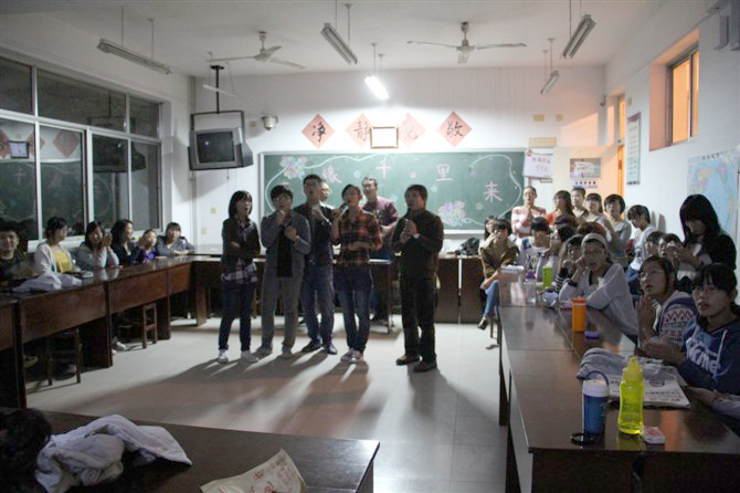 【網(wǎng)宣部】2012年10月12日晚,聊之旅旅行社運(yùn)營總監(jiān)劉寶平參加聊城職業(yè)技術(shù)學(xué)院旅游管理學(xué)院2012級(jí)旅游管理班“有緣千里來相會(huì)”主題文藝晚會(huì),劉老師與同學(xué)們一起歌唱,贏得了同學(xué)們的一陣陣掌聲。