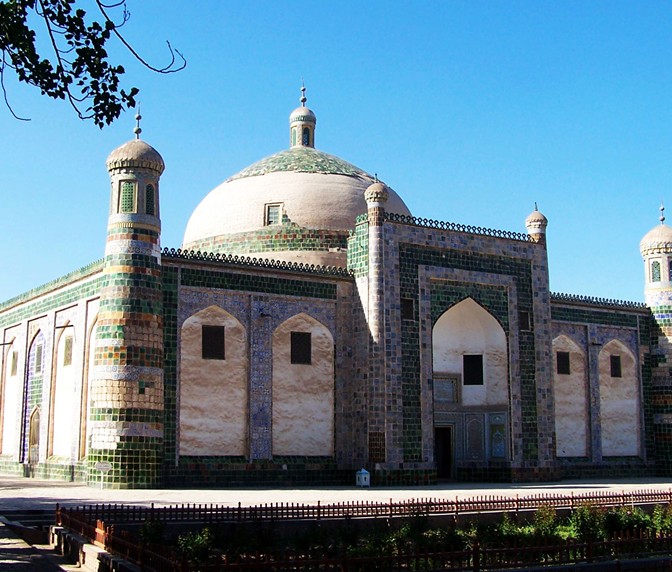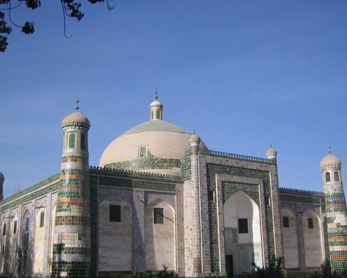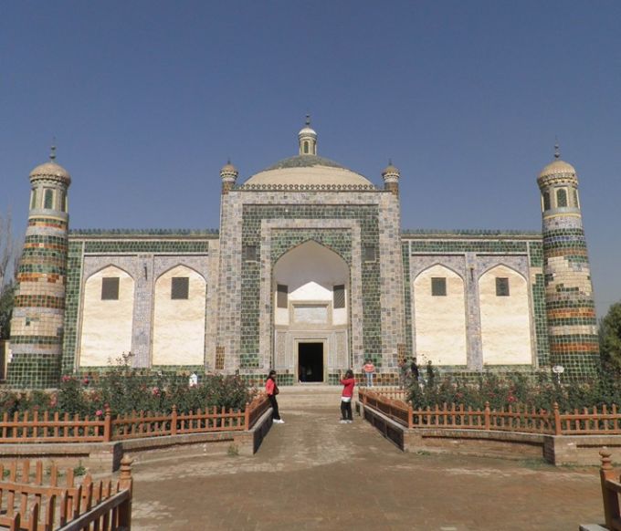 它坐落在喀什市東郊5千米的浩罕村,系自治區(qū)的重點文物保護單位。這是一座典型的伊斯蘭古建筑群,也是伊斯蘭教圣裔的陵墓,占地2公頃。 據說墓內葬有同一家族的五代72人(實際只見大小58個墓穴)。第一代是伊斯蘭著名傳教士玉素甫霍加。他死后,其長子阿帕克霍加繼承了父親的傳教事業(yè),成了明末清初喀什伊斯蘭教“依禪派”著名大師,并一度奪得了葉爾羌王朝的政權。他死于1693年,亦葬于此,由于其名望超過了他的父親,所以后來人們便把這座陵墓稱為“阿帕克霍加墓”。 版權所有山東聊城聊之旅國際旅行社有限公司,轉載必究! 傳說,埋葬在這里的霍加后裔中,有一個叫伊帕爾汗的女子,是乾隆皇帝的愛妃,由于她身上有一股常有的沙棗花香,人們便稱她為“香妃”。香妃死后由其嫂蘇德香將其尸體護送回喀什,并葬于阿帕霍加墓內,因而人們又將這座陵墓稱做香妃墓”。不過據考證,香妃并沒有葬在這里,她確切的葬地是在河北遵化清東陵的裕妃園寢。