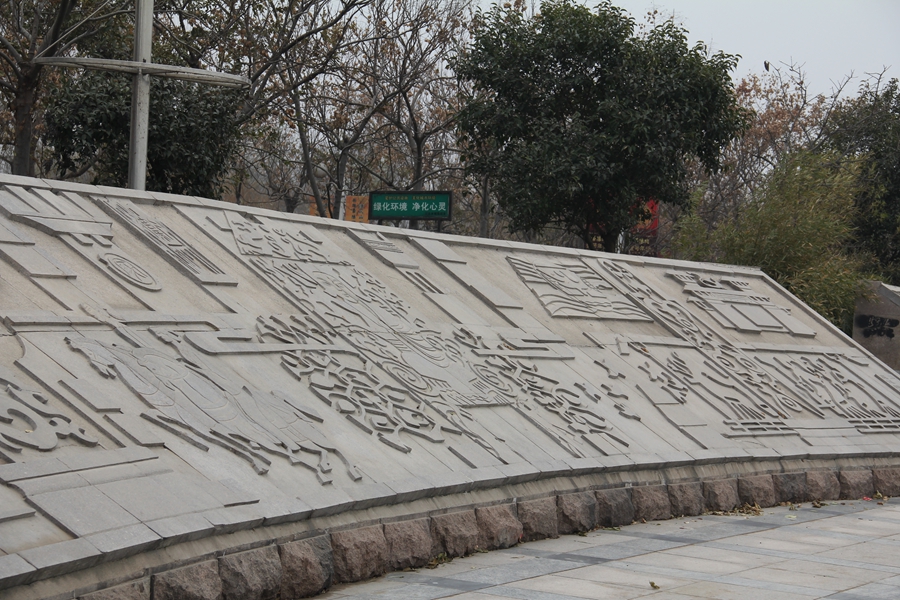 鳳城傳說(shuō)浮雕墻則講述了雌鳳仙子下凡救水城的故事。