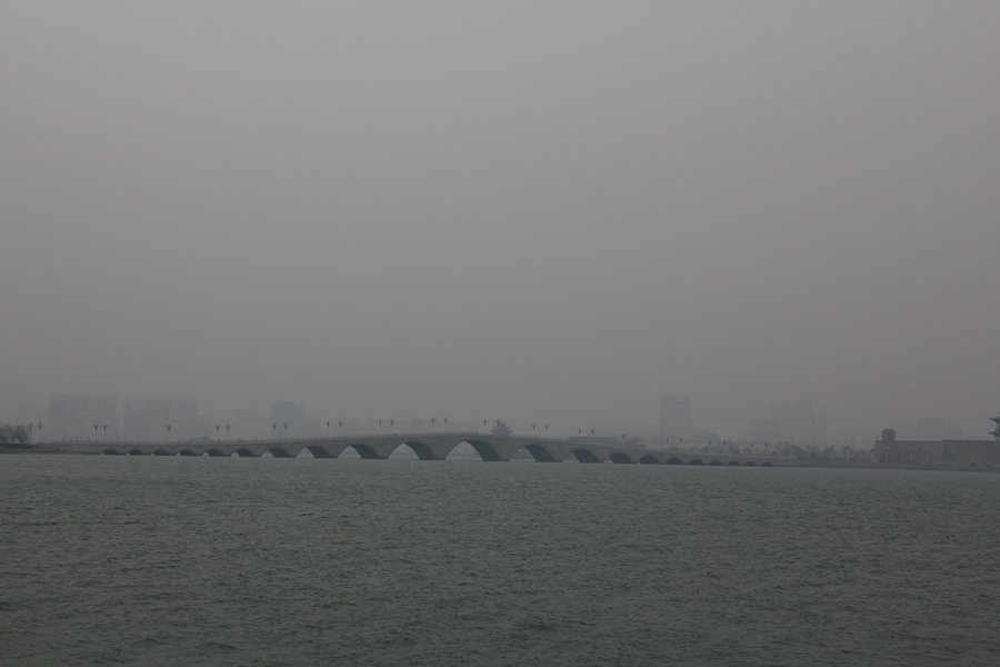 對(duì)了,是東昌大橋。東昌大橋全長(zhǎng)322米,橋面凈寬15米。上部結(jié)構(gòu)為石砌拱橋,共21孔,象征著跨入21世紀(jì),所以又稱世紀(jì)拱橋。
