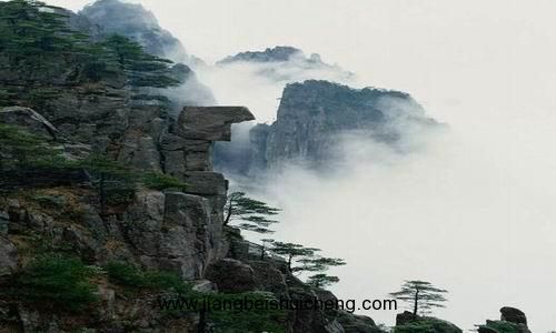 在石筍與仙人峰間的溝壑中,有一塊巨石,下部似一蒲團(tuán),上部似一人直立。從玉屏樓(或天都峰)向北遠(yuǎn)眺,但見他身上衣帶隨風(fēng)而起,流灑飄逸.四周云海翻騰時(shí),似人立蒲團(tuán)浮在云上,狀若飄洋過海,版權(quán)所有,山東聊城聊之旅國際旅行社有限公司,轉(zhuǎn)載必究!故被喻為傳說中的“仙人以海游蓬萊”。今人有詩記日:“浮云涌處山環(huán)水,頑石乘風(fēng)浪里飄。遙望天涯何處是,不如黃海看秋潮?!?