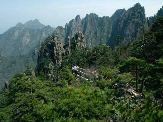 清涼臺又名“法合石”,位于黃山風(fēng)景區(qū)北海景區(qū)獅子峰腰部。自曙光亭西行約200米,即至一岔道口,繼續(xù)西行20余步,便是清涼臺。
