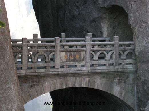 一座小小拱橋在兩座峭壁之間懸空而架,橋下是萬丈深淵,十分險峻而富有情趣。步仙橋?qū)艋镁皡^(qū)和天海、白云景區(qū)連接在一起,一頭通向黃山西大門釣橋庵,一頭可通天海。作為繞谷路線地標(biāo),是很多愛冒險的游客必到之處。