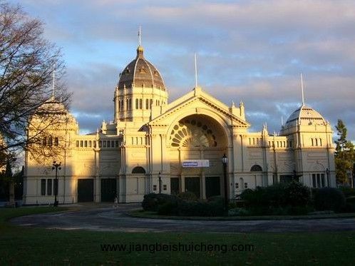 墨爾本皇家展覽館于1880年建成,建筑古色古香、美輪美奐,是1880-1881年舉辦萬國博覽會的會場,當初設計和建造的目的之一就是要把展覽館和墨爾本「在世界地圖上成名」,建筑糅合了拜占庭建筑、古羅馬建筑、和意大利文藝復興建筑的風格,當年在為期八個月的時間內就接待了130萬名參觀萬國博覽會的訪客。在1888年慶祝移民定居澳大利亞一百周年所舉辦的博覽會期間,接待訪客的人數(shù)更達到220萬人。在一百多年前,這都是了不起的盛事。2004年六月,墨爾本皇家展覽館被列入聯(lián)合國世界文化遺產名錄,是澳大利亞至今唯一被列入該名錄的建筑物。更不容易的是,該建筑物現(xiàn)在仍被使用作展覽場地,但出于文物保護的原因,現(xiàn)在的使用頻率已經大大降低。