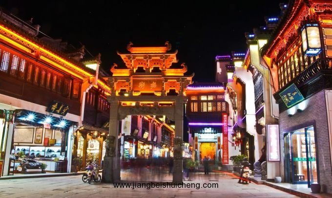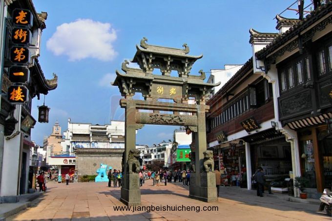 這里全是馬頭墻、小青瓦、白粉墻;磚木結(jié)構(gòu)的鋪面,精巧玲瓏的樓閣、鏤刻精美的花紋圖案,加上小門、大堂、天井、屋與屋之間的深窄小巷,錯(cuò)落別致,熱鬧繁華,顯示了徽派建筑格局的古樸典雅,別有情趣。為了適應(yīng)旅游事業(yè)的發(fā)展,還在專辟的一段“古代街”上設(shè)有茶樓、酒肆、書(shū)場(chǎng)、墨莊,古趣盎然,吸引了眾多的中外游客前來(lái)觀光、購(gòu)物。
