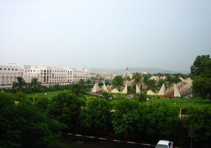 紅色、棕色、黃色和白色等等各種小巧玲瓏的建筑,在熱帶樹(shù)木濃密的樹(shù)葉中若隱若現(xiàn),這些建筑既有阿拉伯的風(fēng)格,又有西非地區(qū)特色,猶如童話(huà)中的宮殿一般。每年旱季時(shí),這里萬(wàn)里無(wú)云,滴水不降,除了一些常綠色的樹(shù)木和人們種植的花草依然生氣勃勃地生長(zhǎng)以外,巴馬科似乎憔悴枯黃了,但是沒(méi)有秋風(fēng)和涼意,使人們覺(jué)得別有一番風(fēng)趣。從山頂眺望,巴馬科全城景色可以盡收眼底。山下有一座動(dòng)植物園,園內(nèi)有奇花異木和珍貴的動(dòng)物。