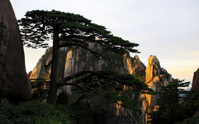 被譽為“天下第一奇山”的黃山,以奇松、怪石、云海、溫泉“四絕”聞名于世,而人們對黃山奇松,更是情有獨鐘。山頂上,陡崖邊,處處都有它們?yōu)t灑、挺秀的身影。黃山最妙的觀松處,當(dāng)然是曾被徐霞客稱為“黃山絕勝處”的玉屏樓了。樓前懸崖上有“迎客”、“陪客”、“送客”三大名松。迎客松姿態(tài)優(yōu)美,枝干遒勁,雖然飽經(jīng)風(fēng)霜,卻仍然郁郁蒼蒼,充滿生機。