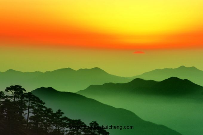 丹霞峰己從排云今新辟兩條盤道,可攀至峰頂,既能觀日出,又可看晚霞。立在峰巔,北面的獅子峰,西邊的九龍、云外諸峰,西北面的芙蓉峰,西南邊的西海群峰??杀M收眼底。