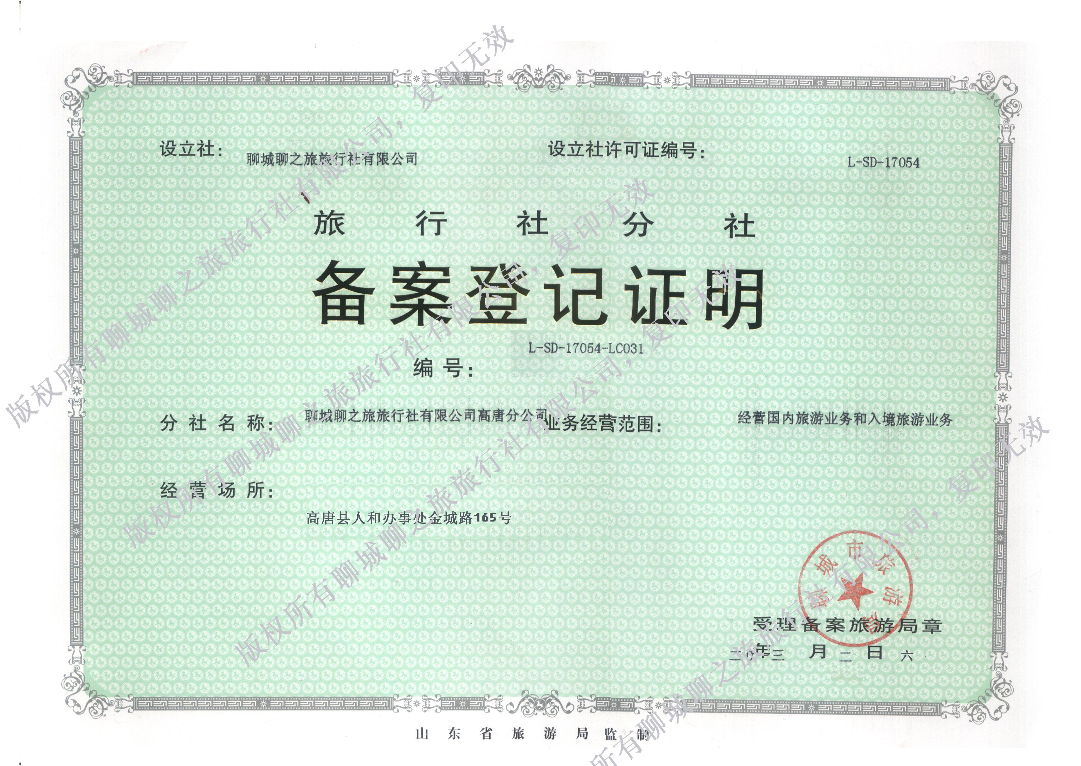 聊城聊之旅旅行社有限公司高唐分公司
