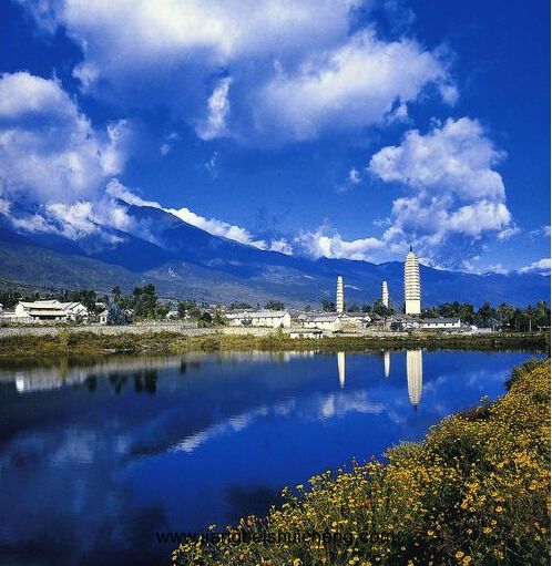崇圣寺三塔和三塔倒影公園互為添輝,相與增色,從而成為最能代表大理形象的重要人文景觀。倒影公園最有特點(diǎn)的是池水碧綠如玉、清澈見底、浪不驚、平如鏡,三塔倒影清晰,令人嘆為觀止。角度不同,倒影形態(tài)亦隨之各異,是攝三塔最佳場所。在冬季,整座蒼山銀妝素裹,三塔倒影更加美麗迷人。正如清代楊炳锃《三塔倒影》所贊“佛都勝概肇中堂,三塔嶙嶙自放光。蒼麓湖蟠倒影,此中幻相說空王。