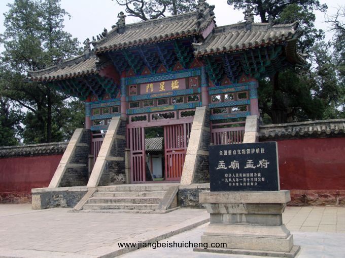 孟府是孟子嫡系后裔居住的府第。建于元至順二年(1331年),元仁宗皇帝封孟子為“鄒國亞圣公”,從此,這里就被稱為“亞圣府”。孟府是一座典型的中國貴族府第,占地面積約2.24萬平方米。以主體建筑大堂為界,前為官衙,后為內(nèi)宅。整體布局大方氣派,典雅中透著幾分威嚴(yán)。孟府內(nèi)現(xiàn)在還保存著封建帝王所賜的朝服、龍袍、圣旨、誥封、家族檔案、印書木刻和書籍字畫等大量珍貴文物,為研究中國封建社會(huì)的歷史,提供了寶貴的資料。