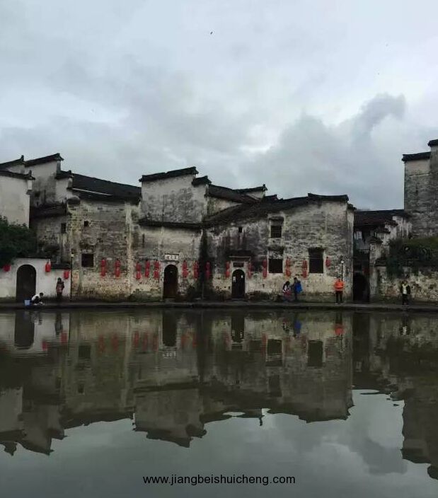 宏村為:山為牛頭,樹為角,屋為牛身,橋?yàn)槟_”的牛形村落。