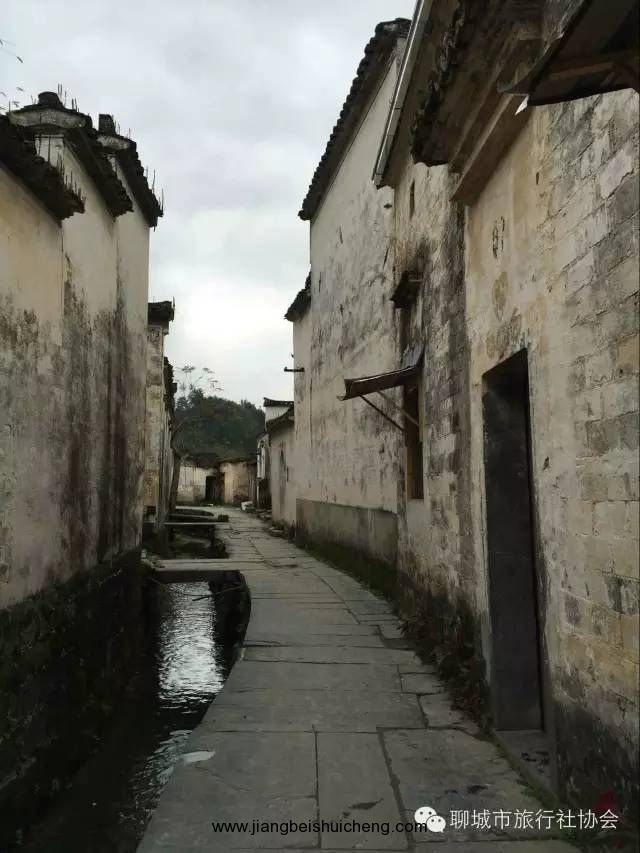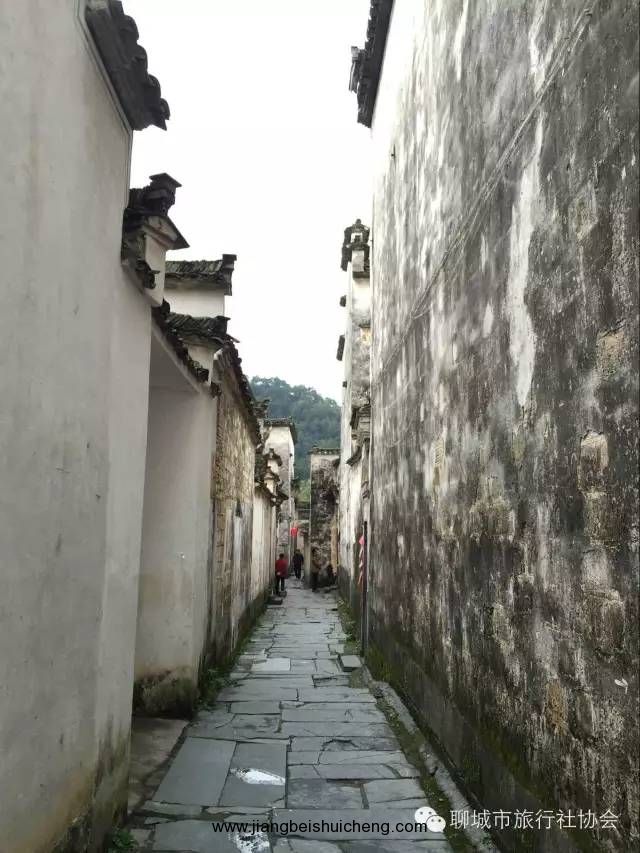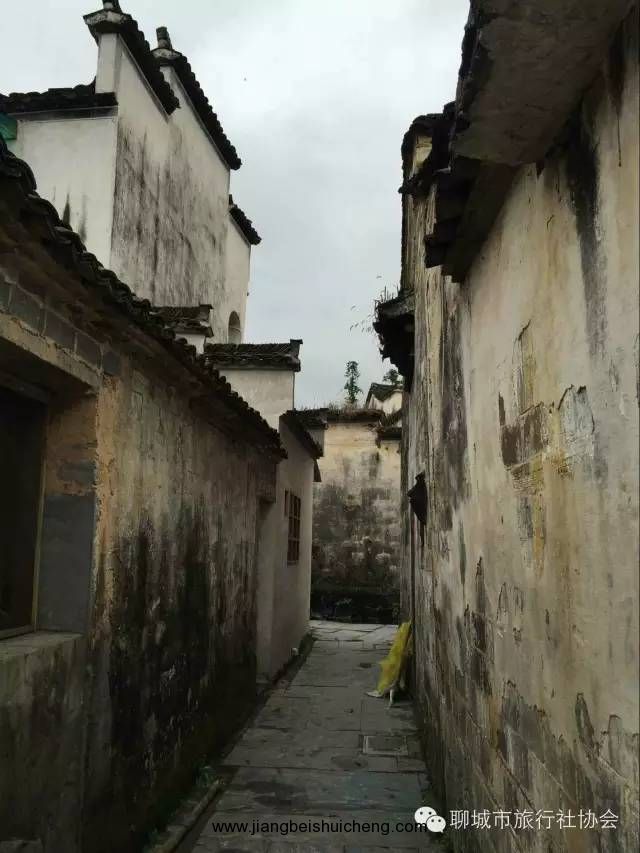 西遞村建房多用黑色大理石,兩條清泉穿村而過,99條高墻深巷,各具特色的古民居,使游客如置身迷宮。