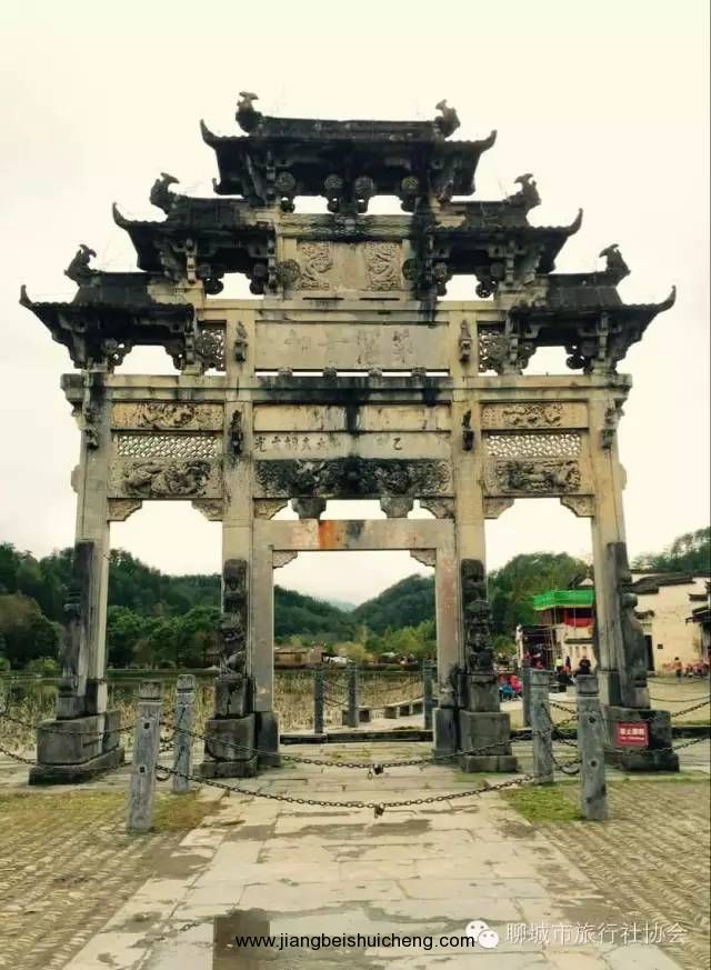 西遞鎮(zhèn)村前的牌樓西遞始建于宋朝的元祐(宋哲宗)年間,由于河水向西流經(jīng)這個村莊,原來稱為“西川”。因古有遞送郵件的驛站,故而得名“西遞”。