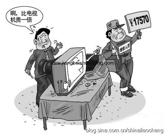 修理店接待人員:“看來你的電視是內(nèi)部出了問題,那你要看內(nèi)科,再請問你要看工程師還是高級工程師,修理費是工程師加收20元,高級工程師要加收30元。”