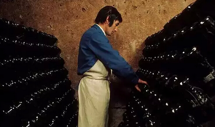 在傳統(tǒng)法中,吐泥通常是通過轉(zhuǎn)瓶(Riddling)進行的。在這個過程中,酒瓶會被緩慢地傾斜并輕搖,酵母會自動地滑到酒瓶的頸口處。之后,再將瓶的頸口進行低溫處理。此時,沉淀于瓶頸處的酵母會結(jié)冰。打開瓶塞時,結(jié)冰的部分會在瓶中二氧化碳的壓力下被擠出來。之后再用葡萄酒和糖的混合物將瓶子裝滿。這個過程被稱為加量(Dosage)。一般情況下,普通的香檳需要經(jīng)過至少15個月的酒泥發(fā)酵,而年份香檳則需要36個月的時間進行酒泥發(fā)酵。